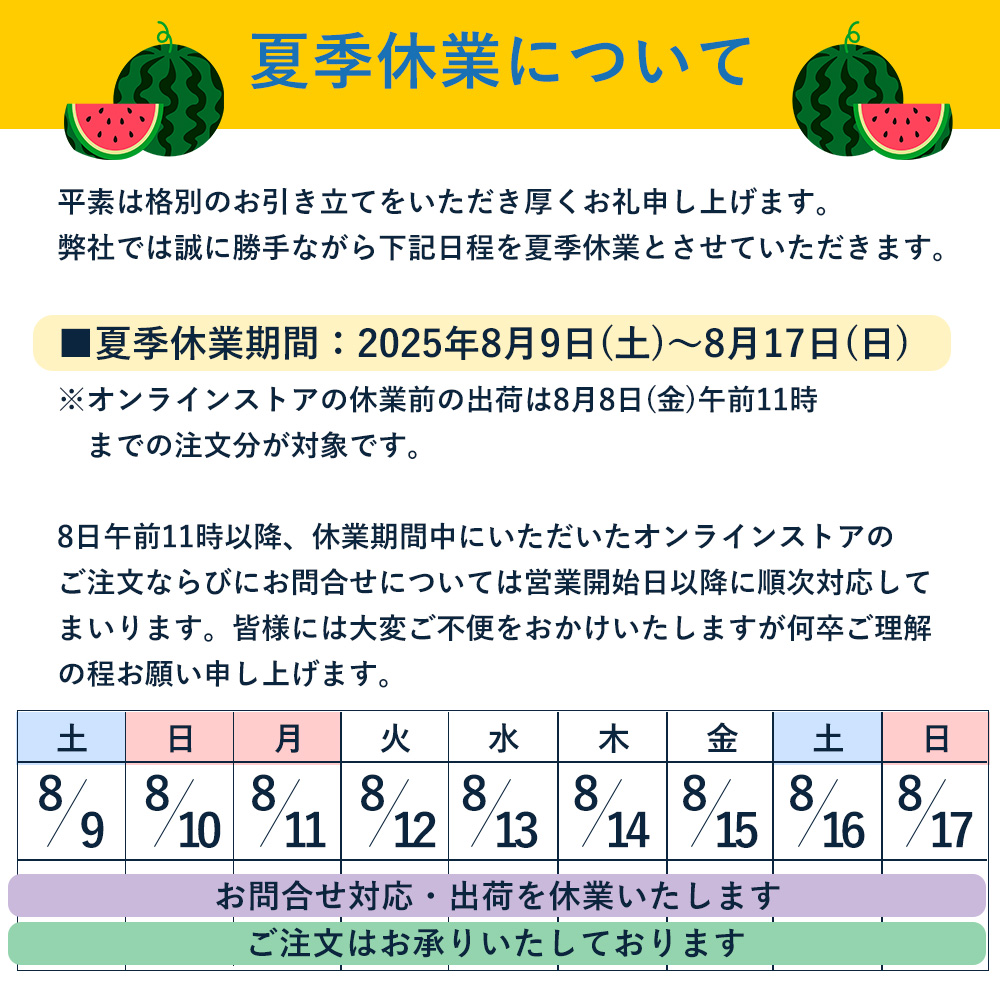 2025年8月夏季休業のお知らせ